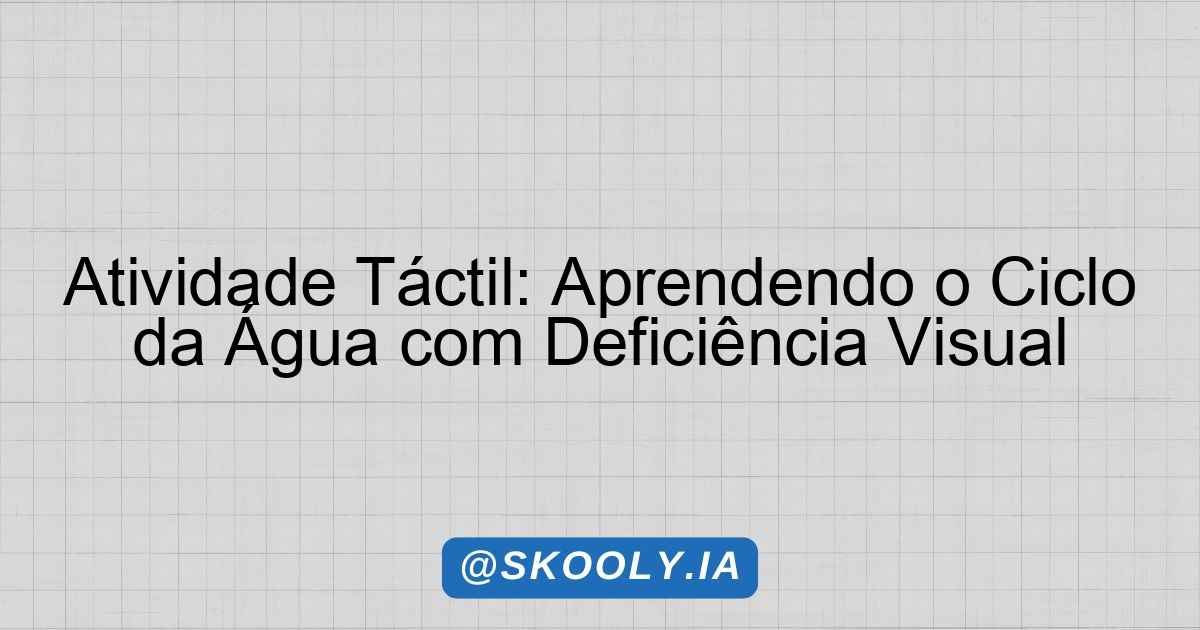 Nesta atividade, os alunos irão explorar o ciclo da água através de uma experiência tátil e auditiva. O objetivo é que compreendam a importância da água e as etapas do ciclo, utilizando materiais que estimulem a percepção sensorial do aluno com deficiência visual.
