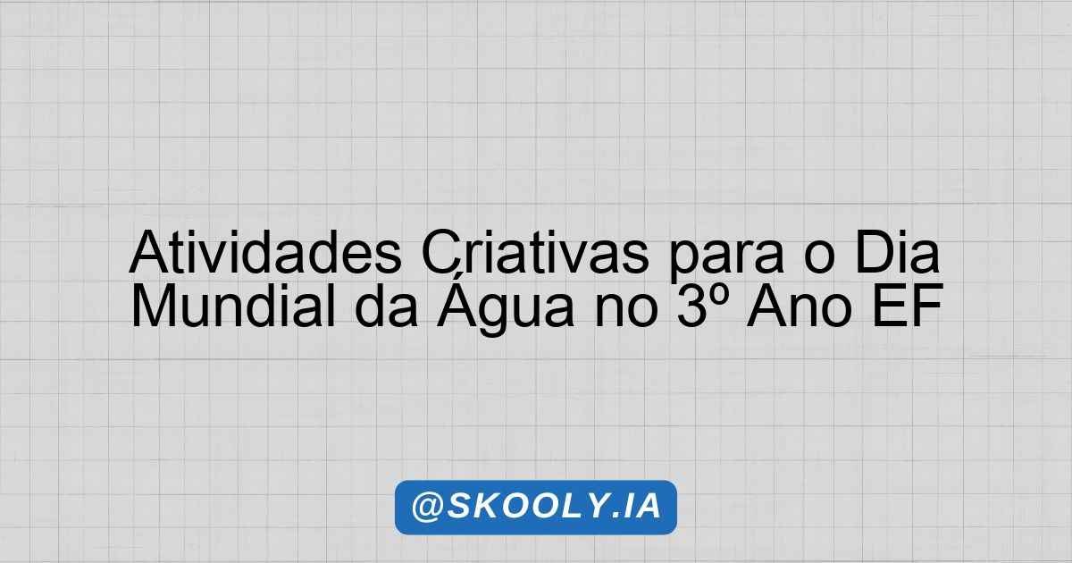 Atividades Criativas para o Dia Mundial da Água no 3º Ano EF