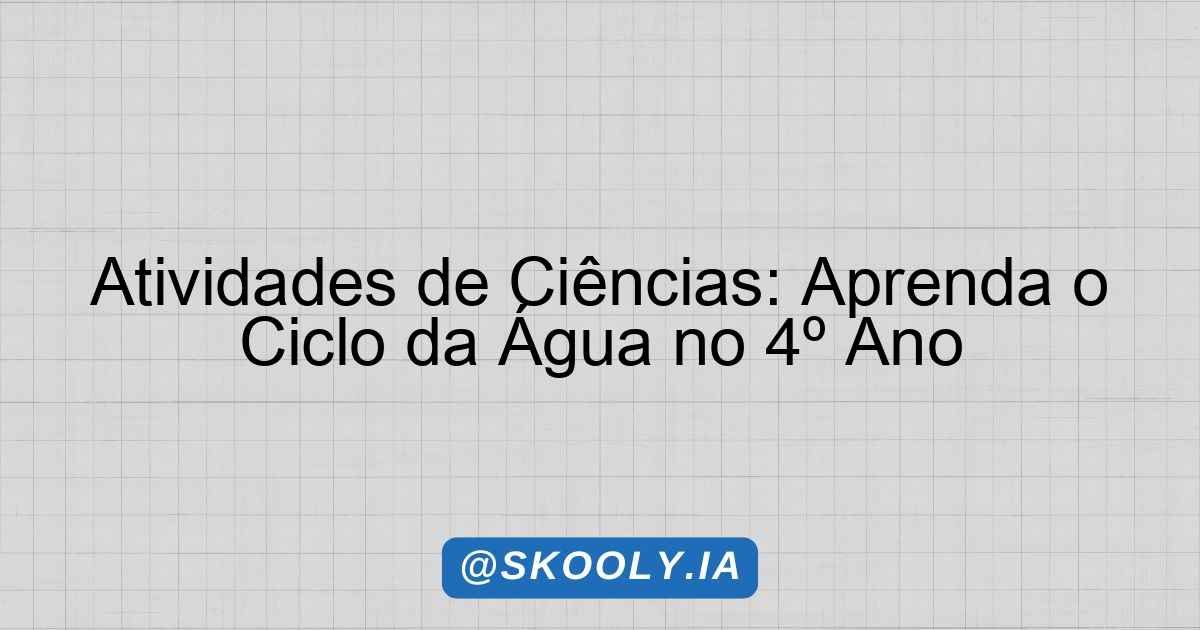 Olá, alunos do 4º ano! Hoje nós vamos falar sobre um assunto muito importante e fascinante: o Ciclo da Água. A água é essencial para a vida e passa por um processo incrível que a transforma continuamente, conhecido como ciclo hidrológico.