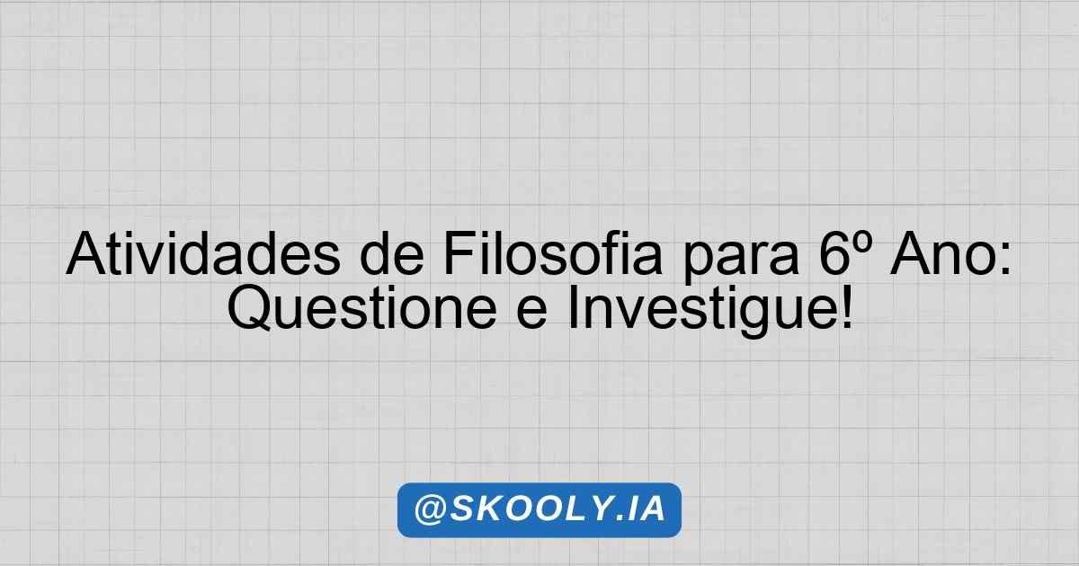 Atividades de Filosofia para 6º Ano: Questione e Investigue!