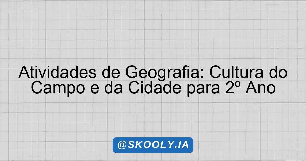 Atividades de Geografia: Cultura do Campo e da Cidade para 2º Ano