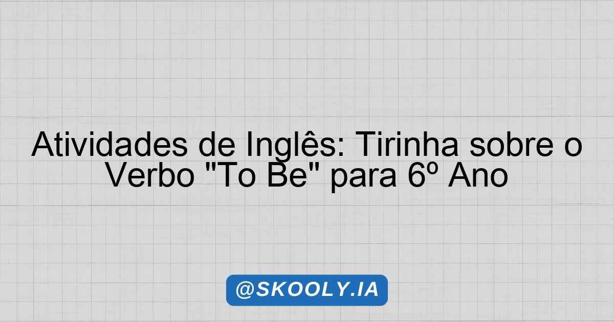Era uma vez em uma pequena cidade chamada Verbópolis, onde todos os habitantes eram apaixonados por aprender novas línguas. No centro da cidade havia uma escola muito especial, a “Escola da Língua”. Os alunos do 6º ano estavam particularmente animados com a próxima aula, que seria sobre o verbo “to be”.