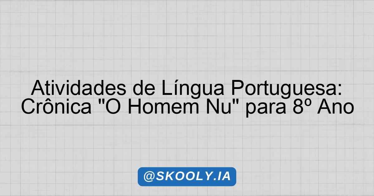 Esse conjunto de atividades e reflexões sobre “O Homem Nu” de Fernando Sabino visa aprofundar o entendimento dos alunos sobre a crônica e os temas que ela aborda, além de estimular o pensamento crítico e a criatividade.