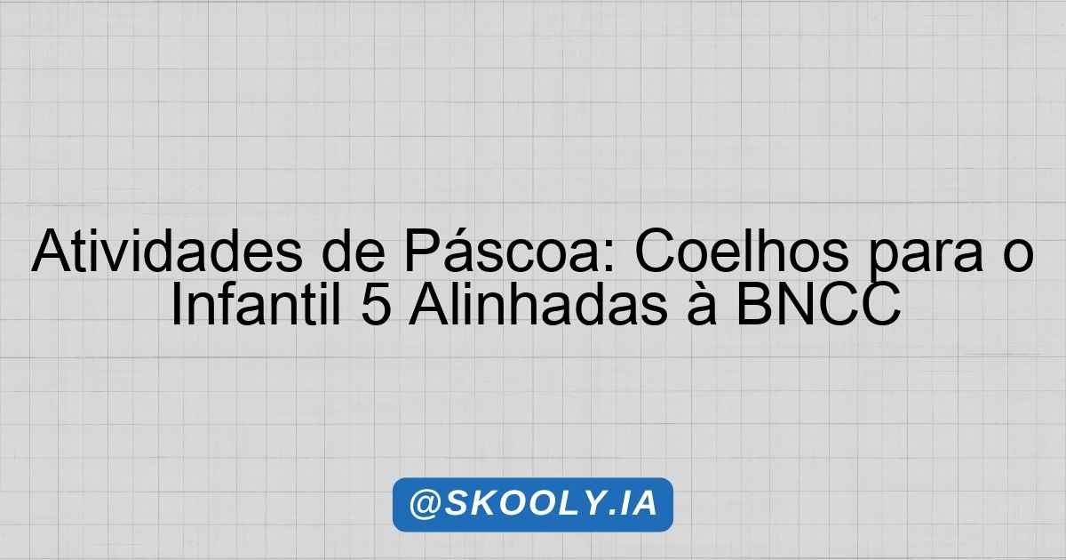 As atividades a seguir foram elaboradas para a turma de Infantil 5, alinhadas à BNCC, com foco no tema “Coelhos” em celebração à Páscoa. Cada atividade desenvolve habilidades relacionadas ao Eu, o Outro e o Nós, promovendo a socialização, a criatividade e o conhecimento sobre o mundo.