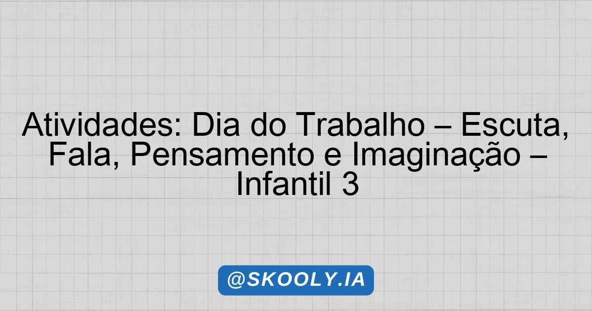 Atividades: Dia do Trabalho – Escuta, Fala, Pensamento e Imaginação – Infantil 3
