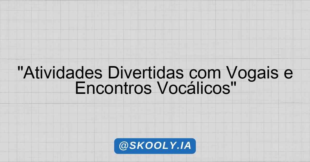 As atividades propostas são diversificadas e têm como finalidade não apenas fixar o conhecimento sobre vogais e encontros vocálicos, mas também proporcionar momentos de socialização e aprendizado colaborativo. Assim, os alunos poderão vivenciar situações em que colocam em prática o que aprenderam, desenvolvendo habilidades essenciais para sua formação acadêmica e pessoal.