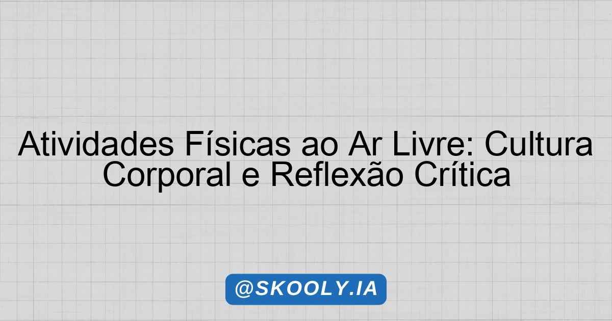 A prática de atividades físicas ao ar livre se torna uma oportunidade não apenas para o desenvolvimento físico, mas também para a reflexão crítica sobre o corpo, a saúde e a vida social. Nos dias atuais, é essencial que os jovens entendam como as diferentes estruturas sociais, culturais e midiáticas moldam suas percepções e suas práticas corporais. Por meio de uma abordagem crítica, os alunos serão convidados a explorar esses contextos, construindo conhecimentos que os ajudem a navegar por essas complexidades.