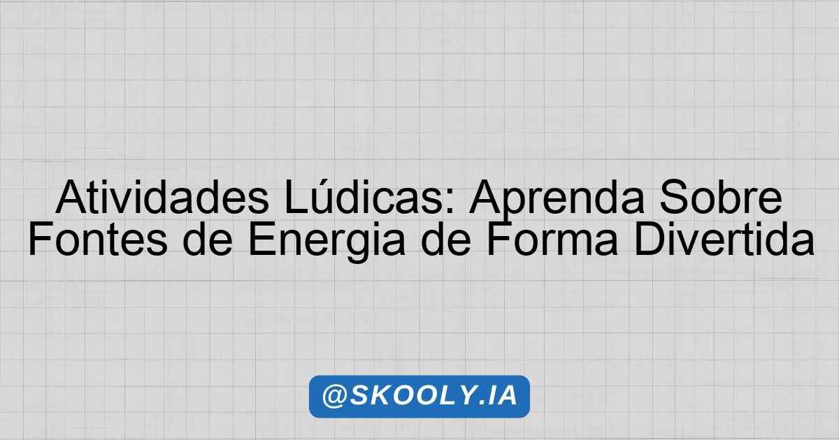 Atividades Lúdicas: Aprenda Sobre Fontes de Energia de Forma Divertida