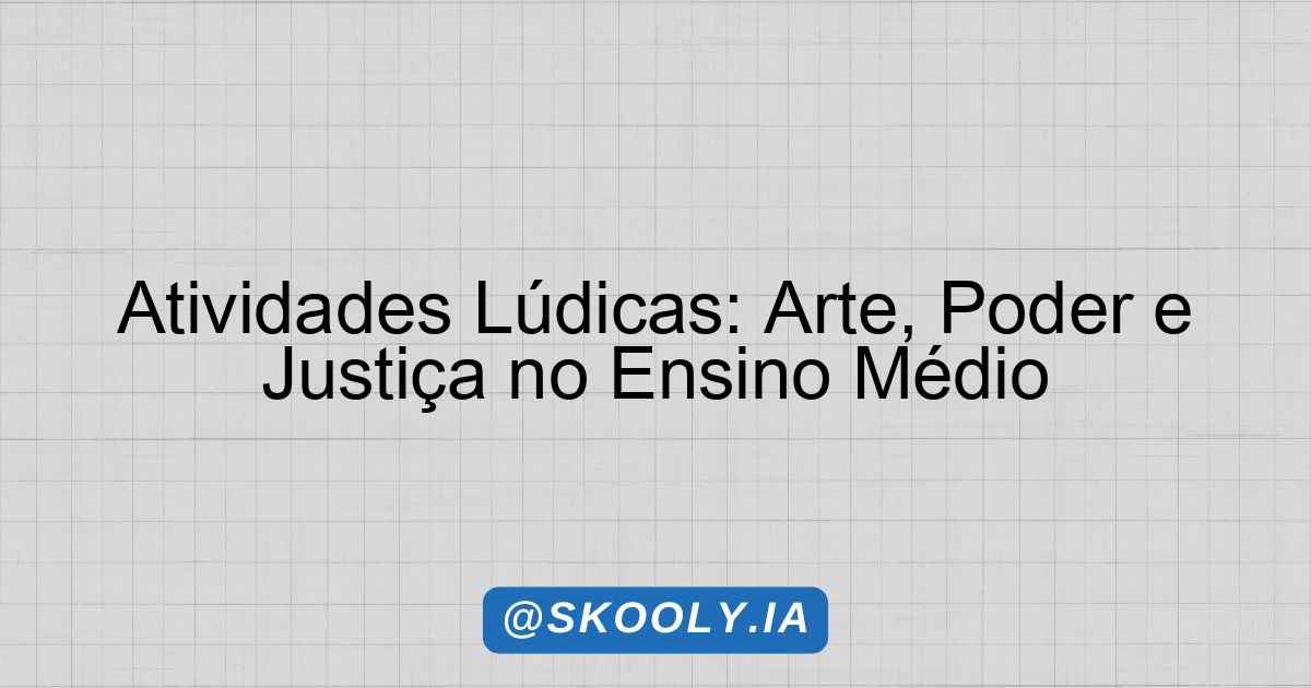A proposta de atividades lúdicas para o Ensino Médio busca explorar as interseções entre poder, justiça e manifestações culturais. Ao longo dessas atividades, os alunos poderão compreender como a arte serve não apenas como um meio de expressão pessoal, mas também como um canal para questionar e criticar realidades sociais. A partir de discussões e análises, os estudantes serão levados a refletir sobre a importância da arte na construção de legados culturais e na luta pela justiça social, formando cidadãos mais conscientes e críticos.