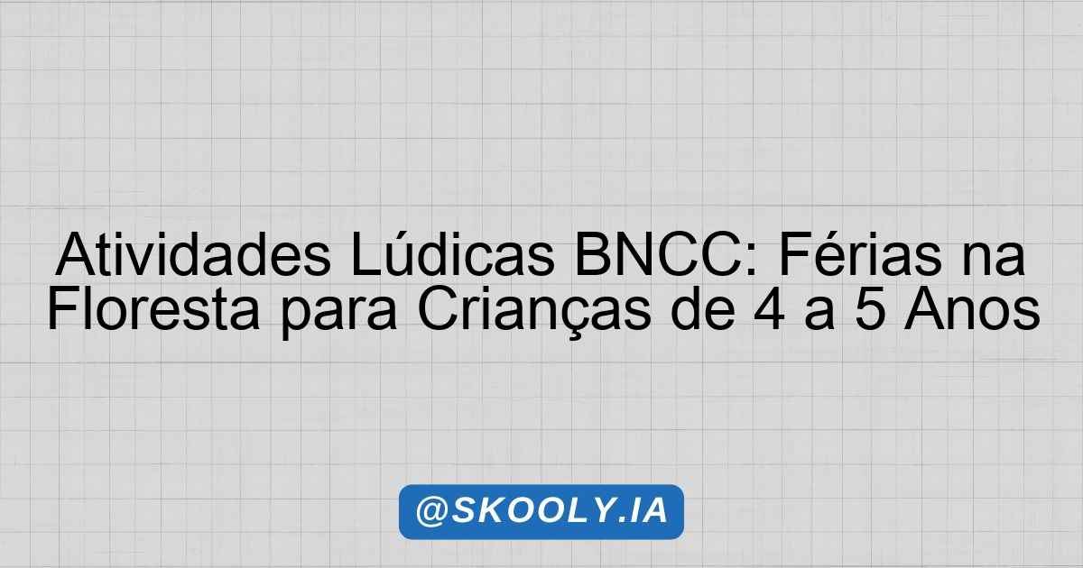 Atividades Lúdicas BNCC: Férias na Floresta para Crianças de 4 a 5 Anos