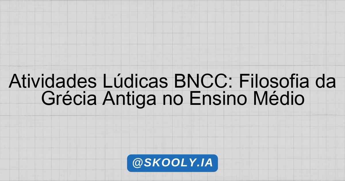 Atividades Lúdicas BNCC: Filosofia da Grécia Antiga no Ensino Médio