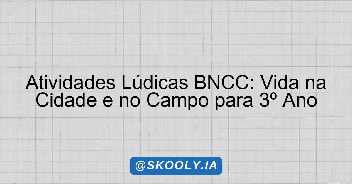 Atividades Lúdicas BNCC: Vida na Cidade e no Campo para 3º Ano