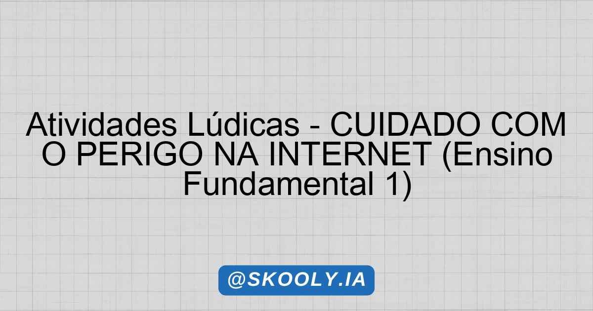 Atividades Lúdicas – CUIDADO COM O PERIGO NA INTERNET (Ensino Fundamental 1)