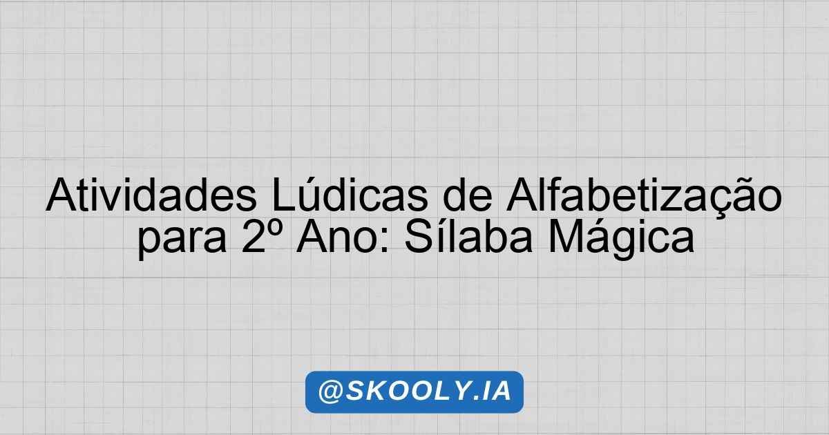 Atividades Lúdicas de Alfabetização para 2º Ano: Sílaba Mágica