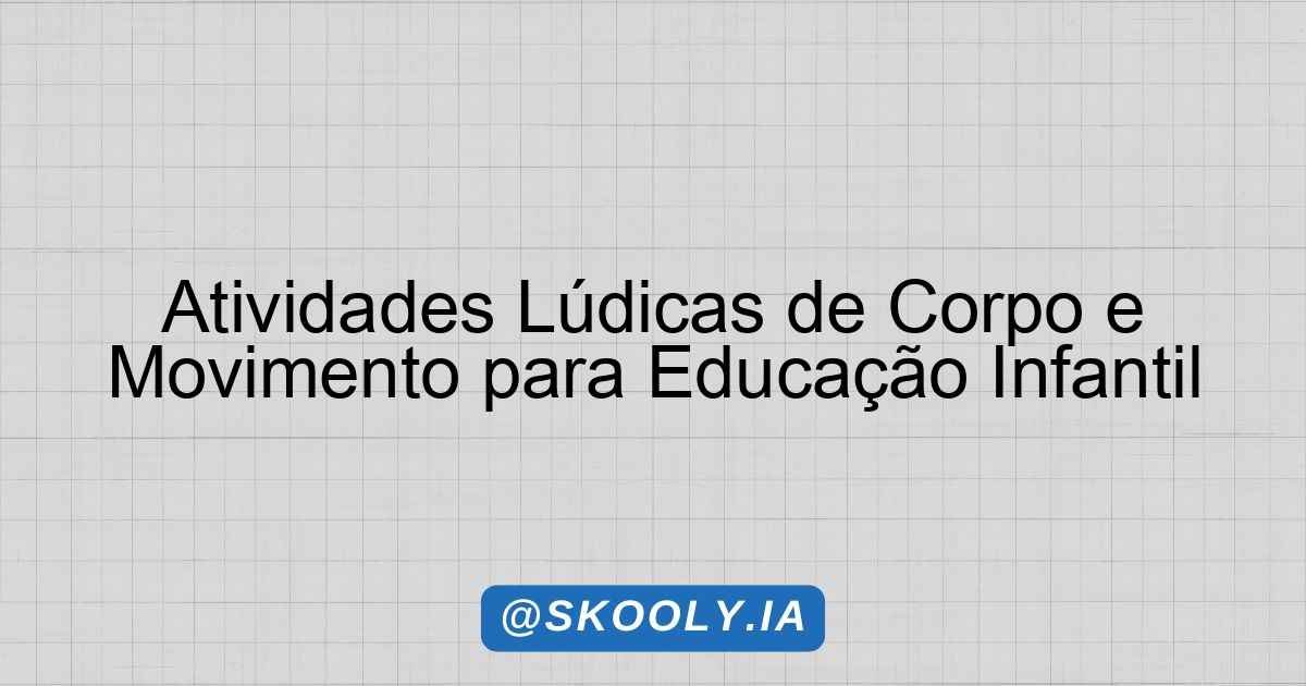 Atividades Lúdicas de Corpo e Movimento para Educação Infantil