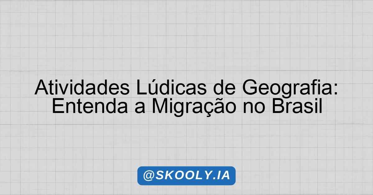 Atividades Lúdicas de Geografia: Entenda a Migração no Brasil