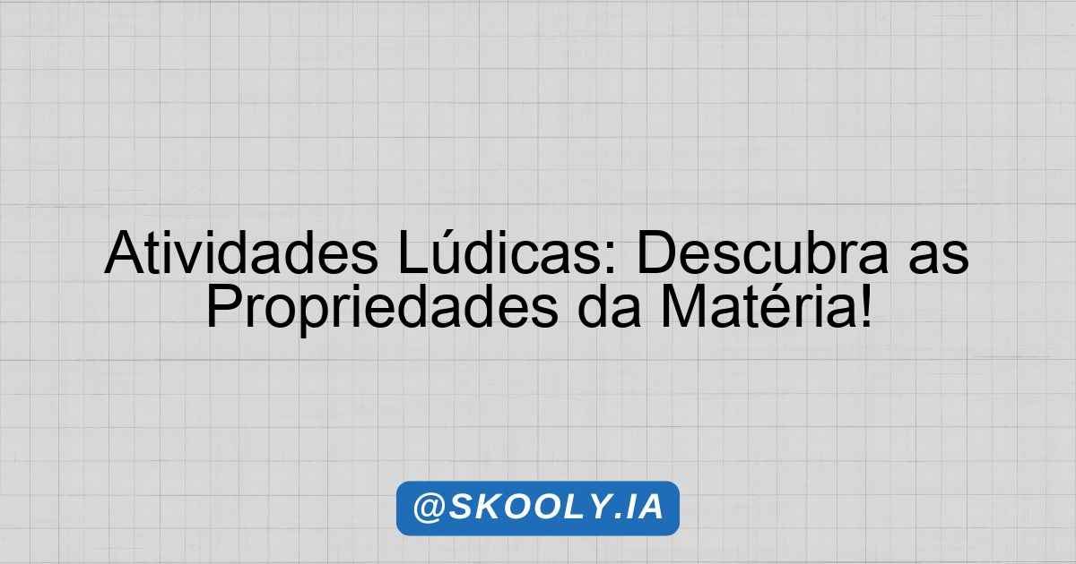 Atividades Lúdicas: Descubra as Propriedades da Matéria!