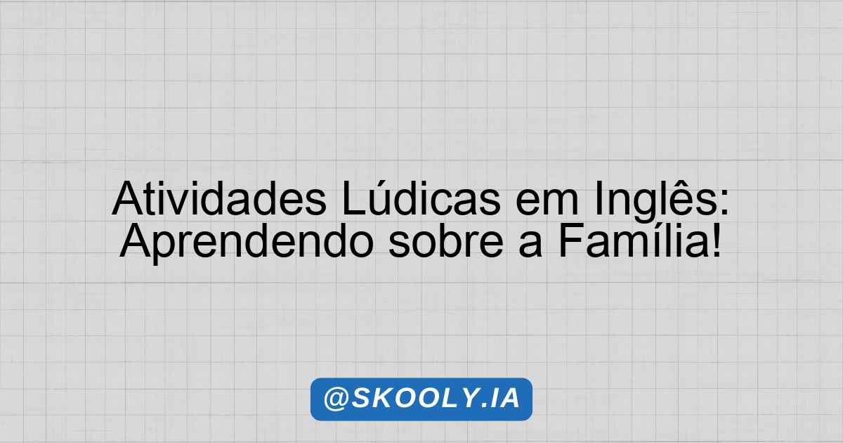 Atividades Lúdicas em Inglês: Aprendendo sobre a Família!