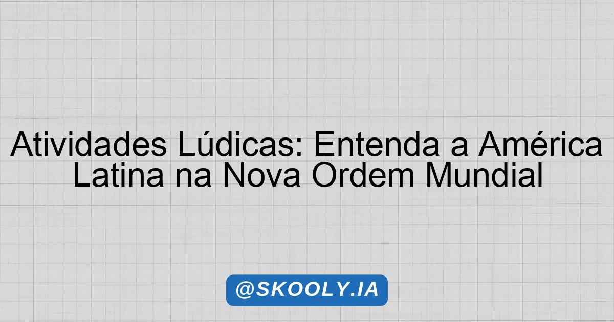 Esta proposta tem como objetivo proporcionar aos alunos do Ensino Fundamental 2 uma compreensão crítica sobre o papel da América Latina na nova ordem mundial. Através de atividades lúdicas, os estudantes poderão explorar questões sociais, econômicas e políticas que envolvem o continente, permitindo uma análise mais aprofundada e reflexiva sobre a realidade latino-americana. O intuito é incentivar a formação de cidadãos conscientes e engajados, capazes de entender a complexidade das relações internacionais e seu impacto na vida cotidiana.