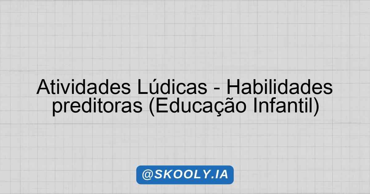 Atividades Lúdicas – Habilidades preditoras (Educação Infantil)