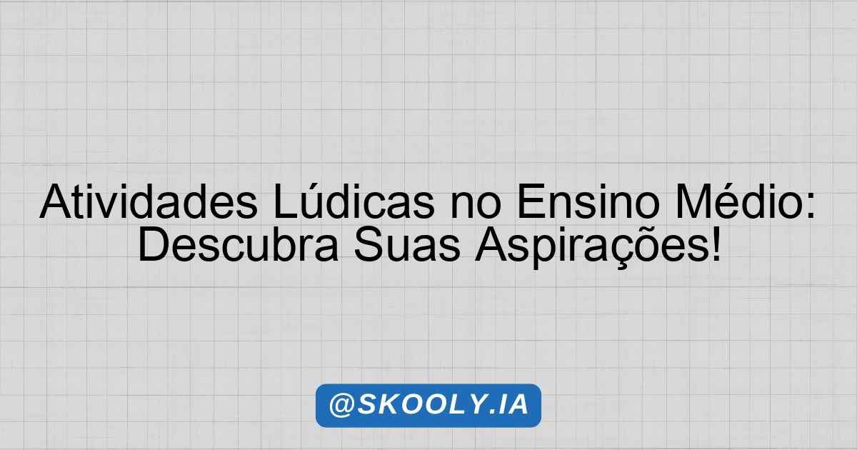 Atividades Lúdicas para o Ensino Médio: O que quero saber?
