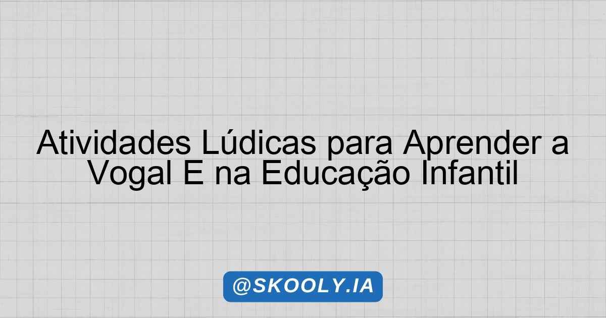 Atividades Lúdicas para Aprender a Vogal E na Educação Infantil