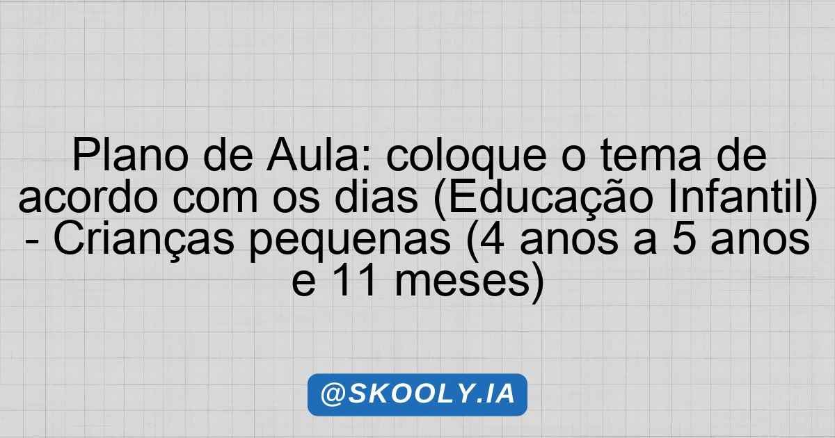 As aulas foram organizadas para proporcionar uma experiência rica, onde as crianças poderão explorar, brincar e aprender de forma lúdica. Este plano está dividido em atividades para cada dia da semana, integrando conteúdos de forma dinâmica e respeitando o tempo de aprendizado dos alunos de 4 a 5 anos e 11 meses. Ao longo da semana, habilidades da BNCC serão trabalhadas de forma integrada, permitindo que as crianças desenvolvam competências importantes para sua formação.