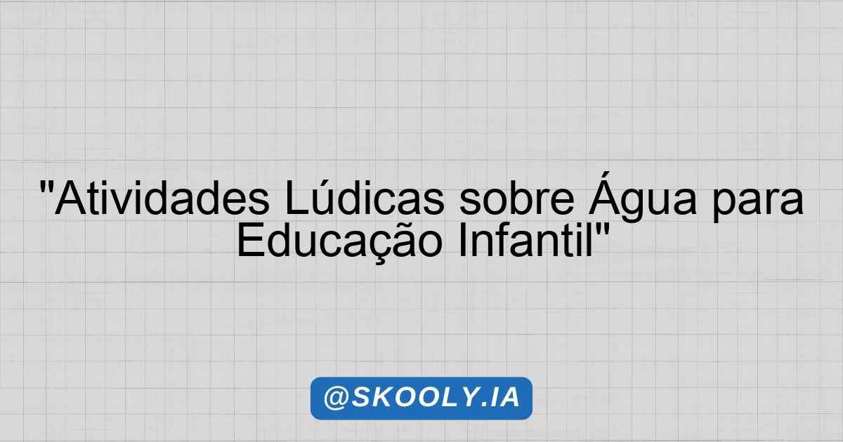 Atividades Lúdicas sobre Água – Educação Infantil