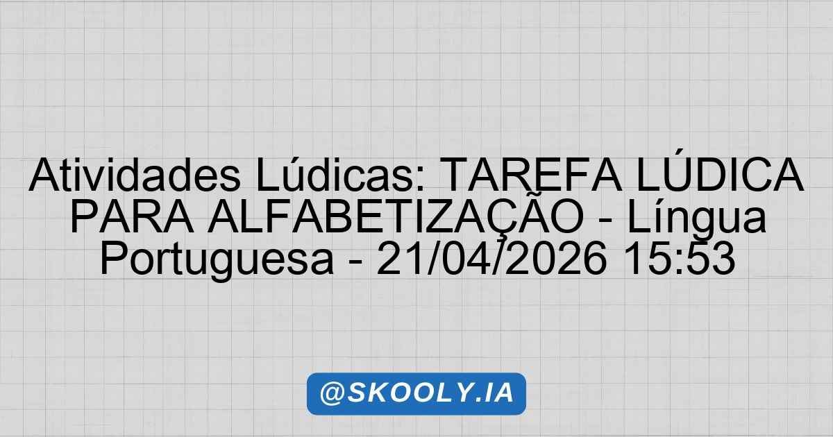 🎲 Atividades: TAREFA LÚDICA PARA ALFABETIZAÇÃO