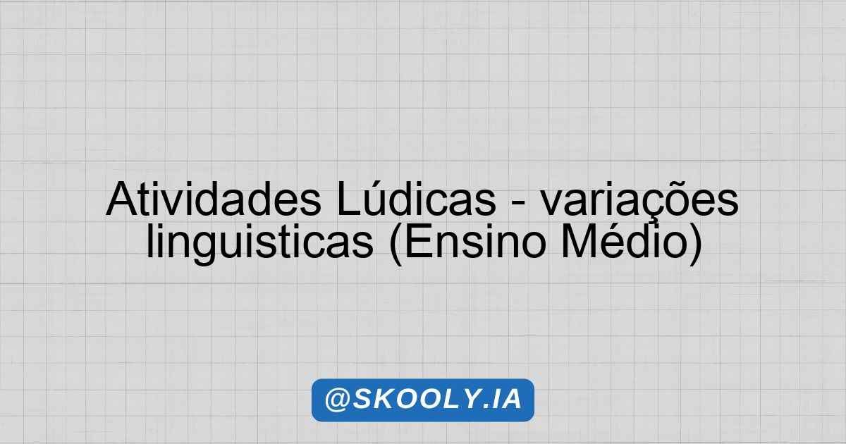 Atividades Lúdicas sobre Variações Linguísticas no Ensino Médio