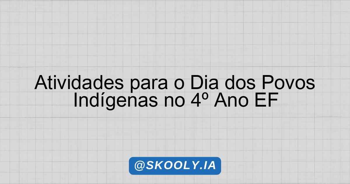 Atividades para o Dia dos Povos Indígenas – 4º Ano EF