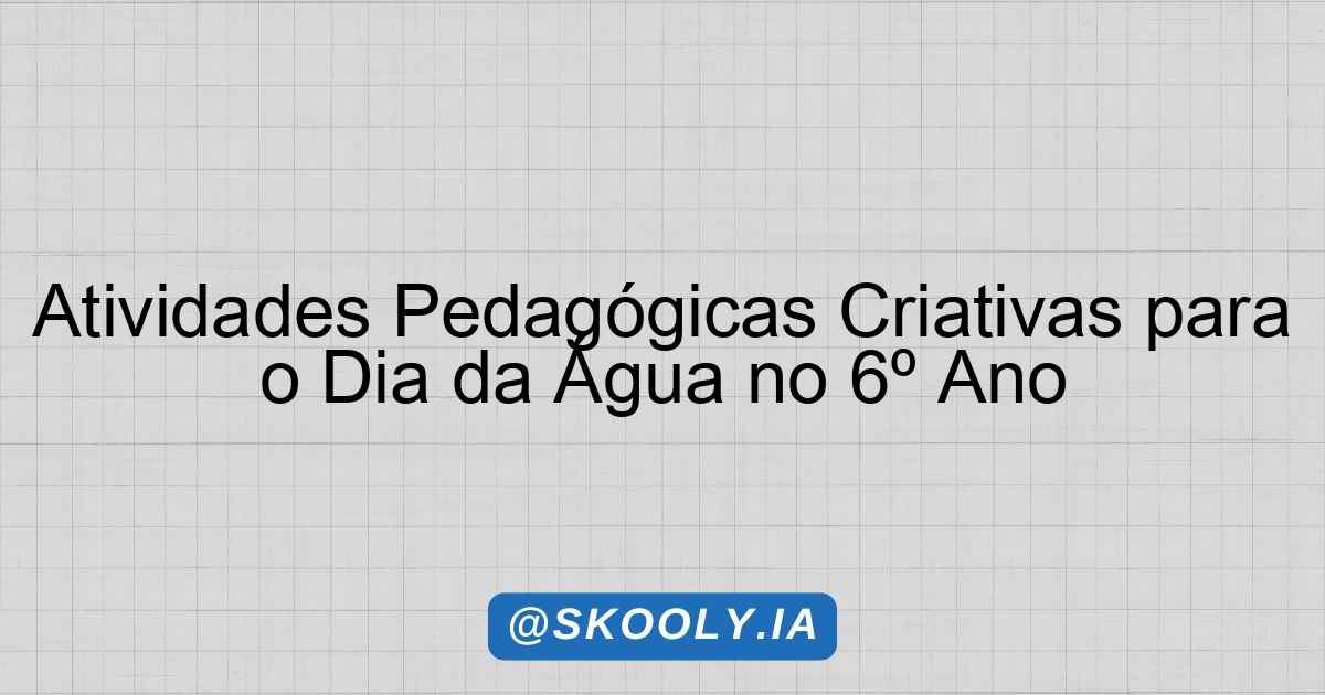 Atividades Pedagógicas para o Dia Mundial da Água – 6º Ano EF