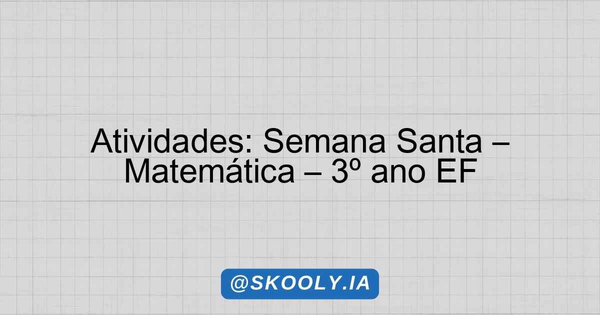 Atividades Pedagógicas para a Semana Santa – 3º Ano EF – Matemática
