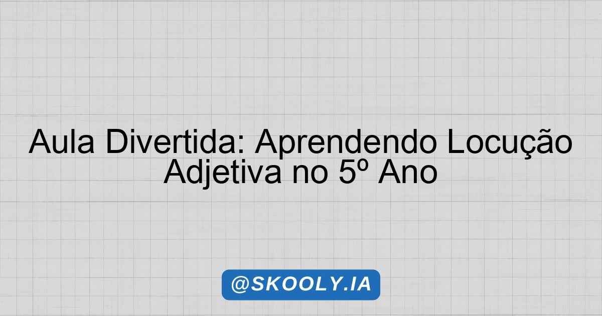 O presente plano de aula visa introduzir o tema da Locução Adjetiva de maneira dinâmica e envolvente para alunos do 5º ano do Ensino Fundamental. Com duração de 50 minutos, a aula tem como objetivo principal desenvolver nos alunos a capacidade de identificar e utilizar corretamente locuções adjetivas em suas produções textuais. A abordagem lúdica e prática será fundamental para que os estudantes compreendam a importância e a funcionalidade desse recurso linguístico.