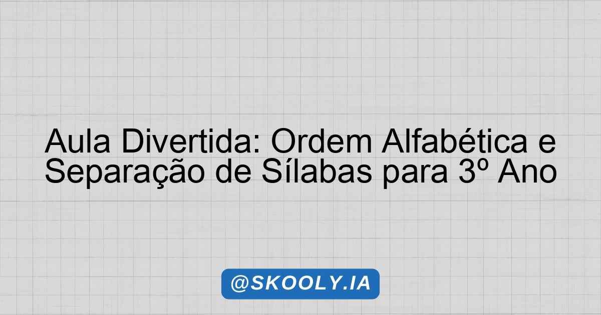 Aula Divertida: Ordem Alfabética e Separação de Sílabas para 3º Ano