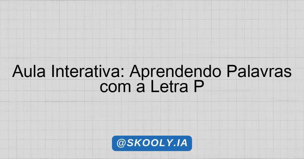 Inicie a aula acolhendo os alunos com um sorriso e uma breve conversa sobre como foi o dia deles. Pergunte se conhecem palavras que começam com a letra P e incentive que compartilhem algumas delas. Isso ajuda a criar um ambiente receptivo e a despertar o interesse pelo tema.
