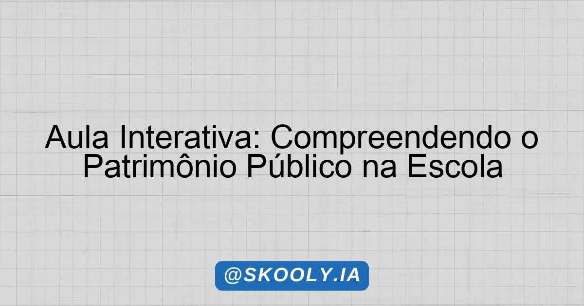1. Abertura (5 min): O professor inicia a aula apresentando o conceito de patrimônio público, pedindo aos alunos que compartilhem o que entendem por esse termo.
