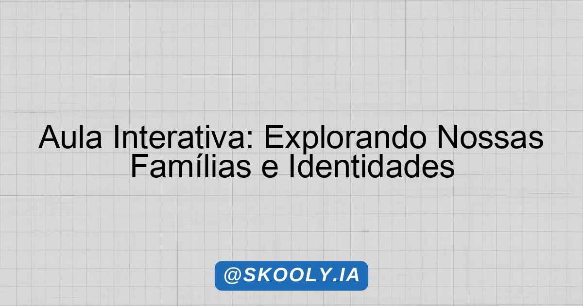 Apresentar o tema da aula: “Minha Família” e discutir a importância do conceito de identidade, cultura e pertencimento. Questionar os alunos sobre suas diferentes origens familiares e suas experiências.