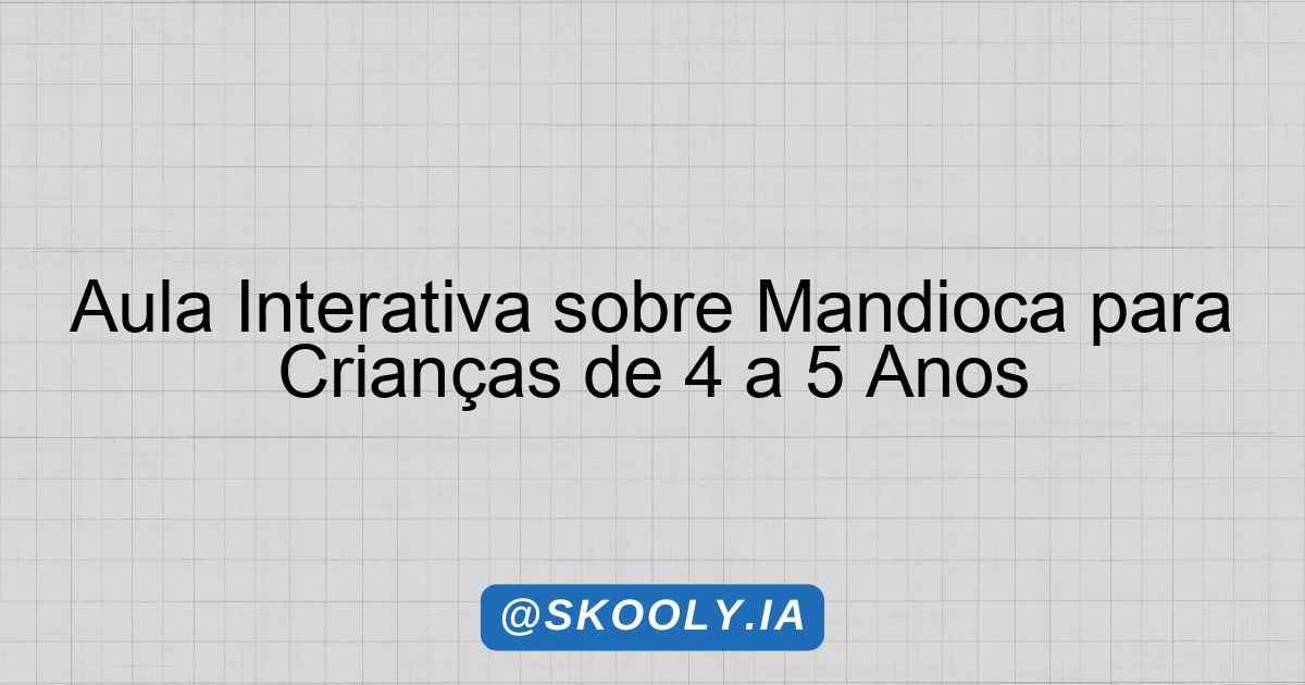 Este plano de aula foi elaborado com o objetivo de fornecer uma experiência rica e interativa para crianças de 4 a 5 anos, focando no tema mandioca. Ao longo da aula, os alunos terão a oportunidade de explorar suas conhecimentos prévios, realizar uma atividade prática em uma plantação e entender a importância cultural e nutricional da mandioca. O projeto se estrutura em diversas atividades que permitem o desenvolvimento de habilidades, além de instigar a curiosidade das crianças sobre os produtos que podem ser feitos a partir desta raiz tão significativa.