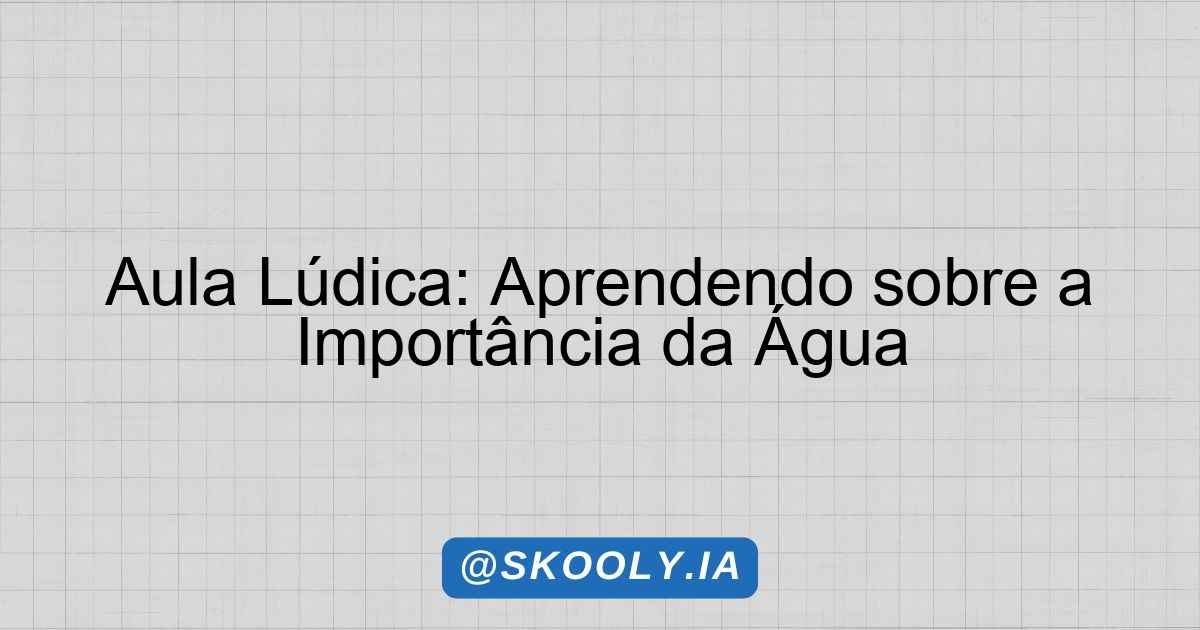 Aula Lúdica: Aprendendo sobre a Importância da Água