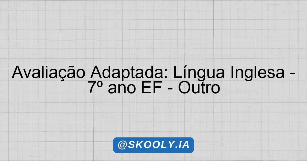 Avaliação Adaptada: Língua Inglesa – 7º ano EF – Outro