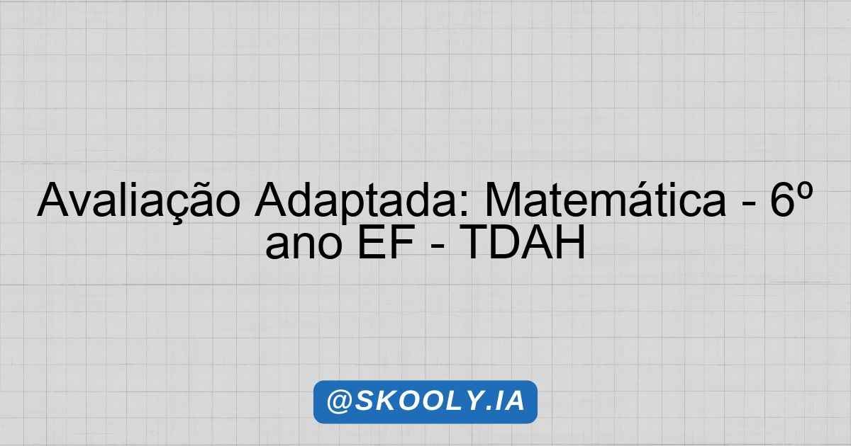 Avaliação Adaptada: Matemática – 6º ano EF – TDAH
