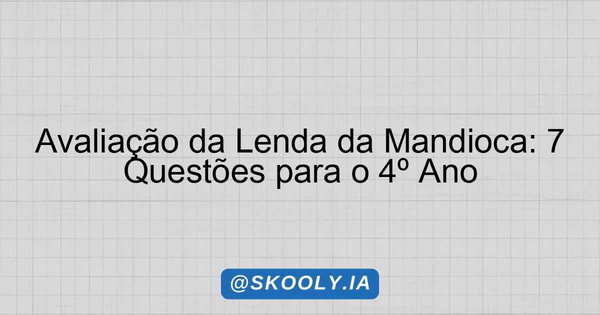 Conjunto de questões para o 4º ano do Ensino Fundamental I, com foco em Linguagens, baseadas na lenda da mandioca. As questões variam em tipo e nível de dificuldade, proporcionando uma avaliação abrangente do entendimento do texto.