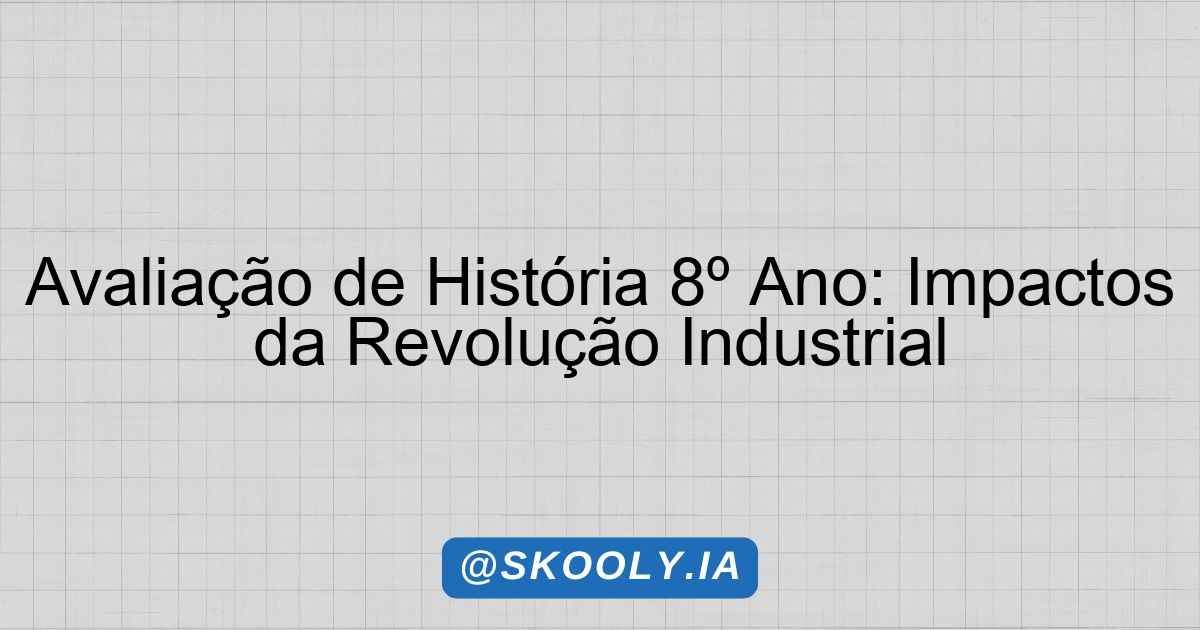 Questão 6 (Questão aberta – Habilidade EF08HI03) Analise o impacto ambiental da Revolução Industrial e como isso se relaciona com os desafios atuais de sustentabilidade. Quais lições podem ser aprendidas? Resposta: _________________________________________________________________ _____________________________________________________________________________