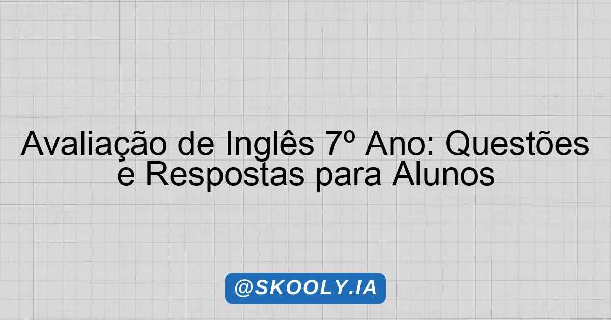 Avaliação de Inglês 7º Ano: Questões e Respostas para Alunos