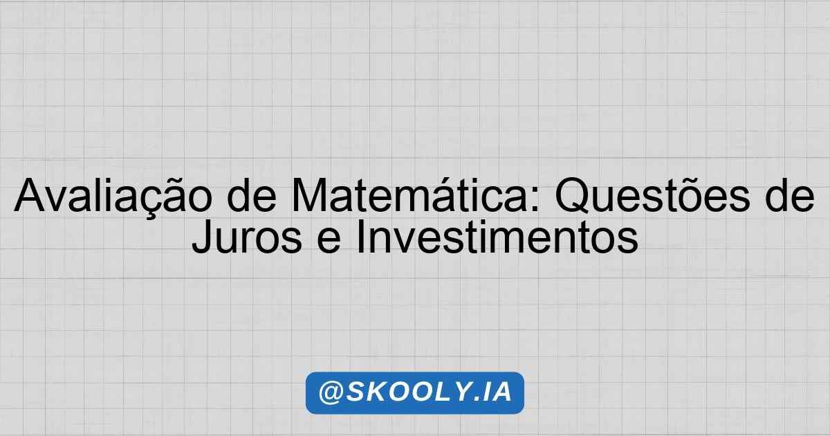 Avaliação de Matemática: Questões de Juros e Investimentos