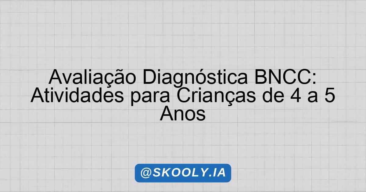 Avaliação Diagnóstica BNCC: Atividades para Crianças de 4 a 5 Anos