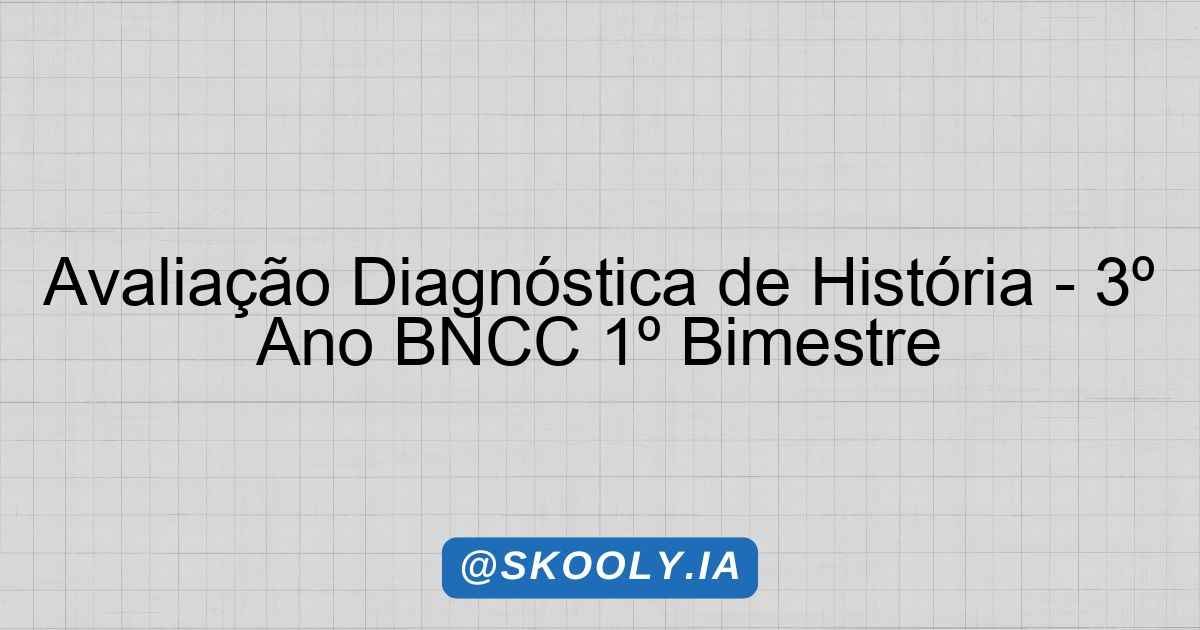 Avaliação Diagnóstica de História – 3º Ano BNCC 1º Bimestre