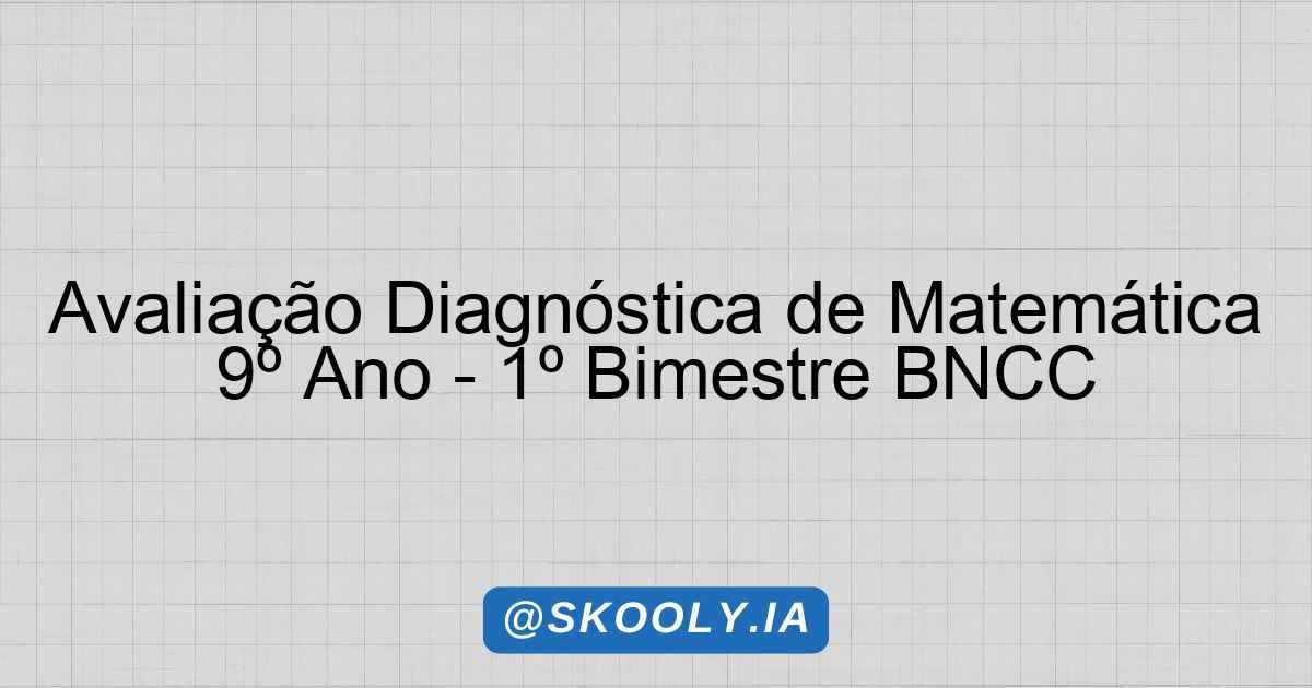 Avaliação Diagnóstica de Matemática 9º Ano – 1º Bimestre BNCC