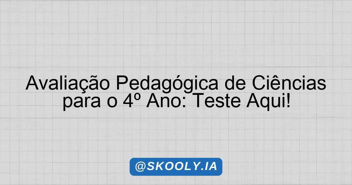 Avaliação Pedagógica de Ciências para o 4º Ano: Teste Aqui!